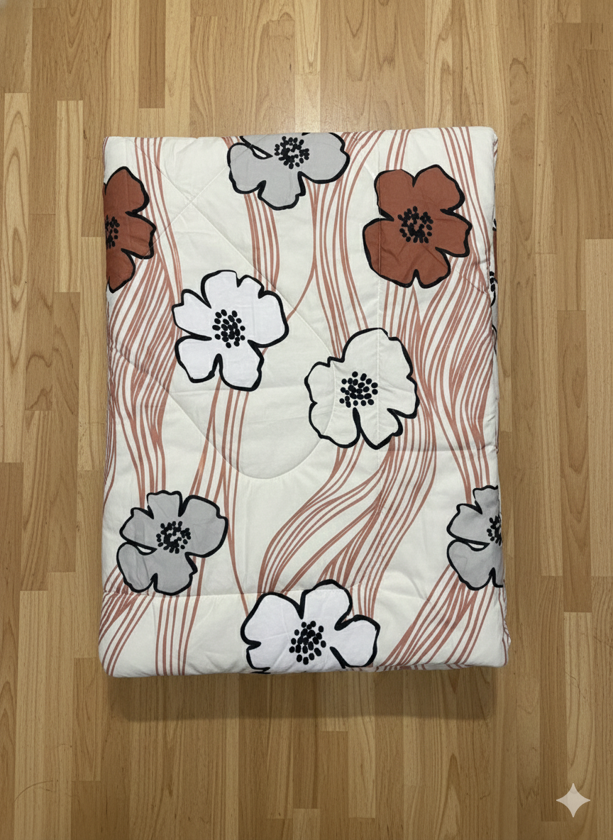 Experience hotel-style comfort at home! Ultrasonic fabric thi banavel aa comforter super smooth, fluffy ane extra cozy feel aape. 1500gm ni perfect filling thi winter ma warm ane summer ma light comfort—both season mate ideal. High-quality ultrasonic stitching filling ne fixed rakhe, je thi shape, softness ane look lambe samay sudhi same rahe.